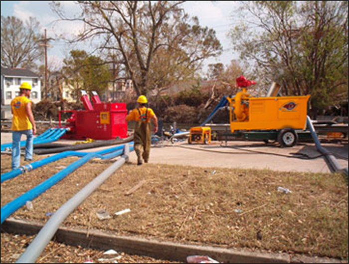 One of MTT’s proudest moments was when we played a major role during Hurricane Katrina‘s emergency response. MTT and the Shaw Group had teamed to pump the flood waters out of New Orleans. MTT provided operating teams to man two portable Turbine FP-5285 pumps on site for over six weeks despite the unforgiving climate. Our teams even managed to operate the pumping equipment donated by international volunteers who were unable to man their own pumps.