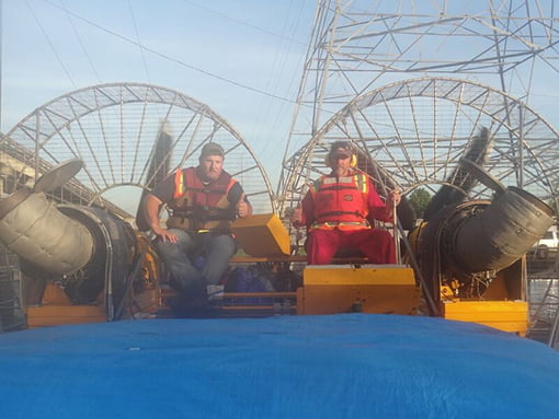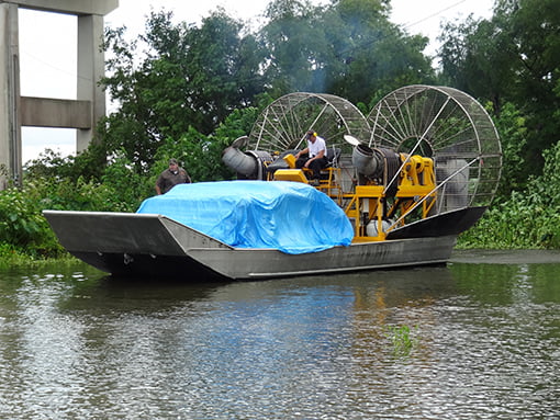 Case Study 2: – Remediation of Marsh Buggy Damage to Wetlands – Jean Lafitte Project – Flooded Parking Area – MTT Super Turbine Airboat – www.marineturbine.com
