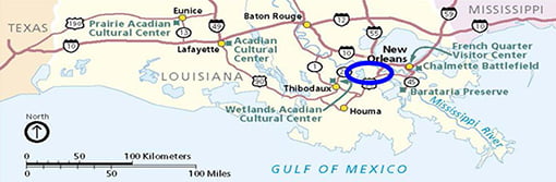 Study 2: Remediation of Marsh Buggy Damage to Wetlands – Jean Lafitte Project – Area Map – MTT Super Turbine Airboat – www.marineturbine.com