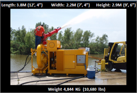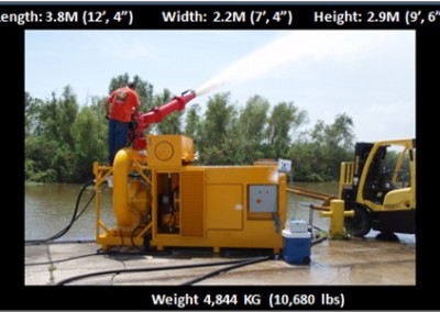 All accessories such as lifting basket, flex hoses, spreader bar and shackles to lift the Rig Pack are included. In the event that such a high water lift (24 meters / 80 feet) is not required the system will still perform in the 5,285 GPM+ range whether on a ship at sea or in a land-based application.