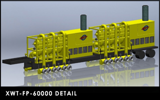 Water Transfer packages are trailer mounted pump assemblies capable of moving huge volumes of water. MTT’s current package is sized for 60,000 GPM water delivery. These packages are designed to deliver water from Point A to Point B with trunk lines and boost stations at any point along the way. The main drivers are two each 3,850 HP rated gas turbine engines coupled to proprietary MTT reduction gearboxes.