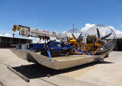 As with all of MTT’s offerings our system is designed to run on various fuels with diesel being the fuel of choice. The volatility of gasoline makes conventional airboats potential bombs when operating in hazardous areas such as oil spills and fire situations. Each airboat is capable of being rigged with an articulating crane, hydraulic drill, firefighting equipment and rescue configurations as specified by the customer.