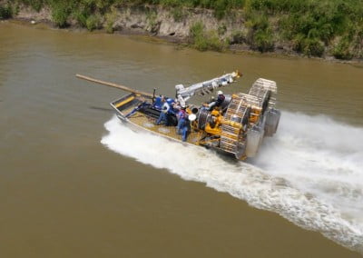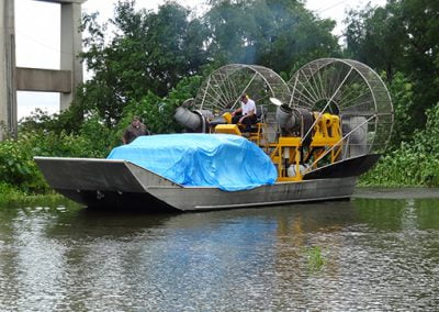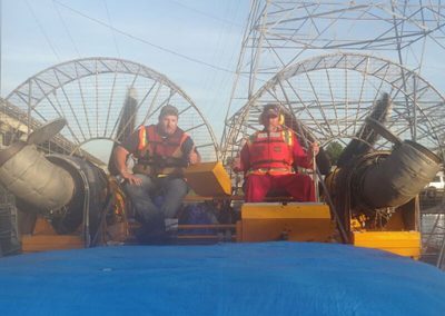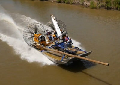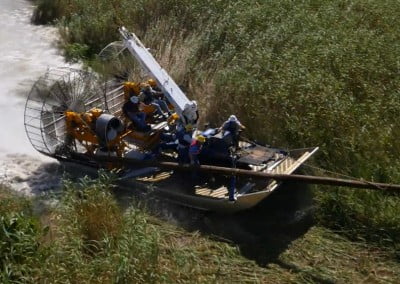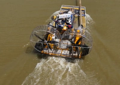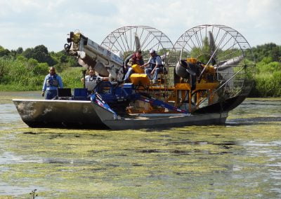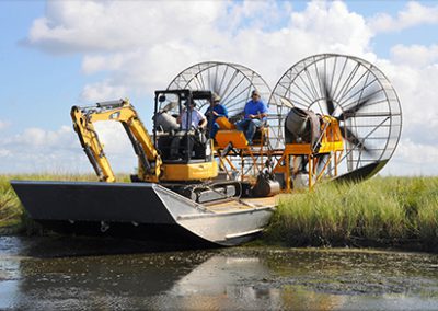 Applications for the MTT Super Airboat can be found in inland waterways where oil, gas and utility work has taken place. For example, in Louisiana where MTT is located, there are countless oil wells that were drilled in our coastal areas when dredging was an acceptable practice. These same wells are now virtually inaccessible without destroying the environment surrounding them.