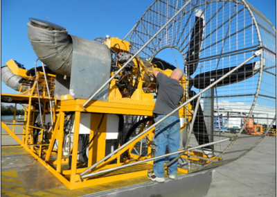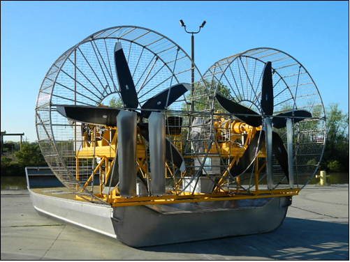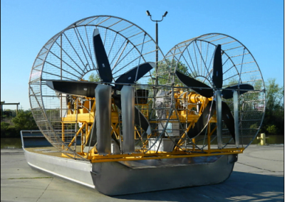 MTT has designed the ultimate solution to the ever increasing concern for coastal erosion and damage to the wetlands. The MTT Super Airboat consists of a proprietary propulsion system using two 1,500 HP marinized gas turbine engines. This package is designed to offer unparalleled performance using our exclusive 10 ft. diameter propeller system which generates more thrust than any system in production today. The core technology was developed for Winged Ship Technologies in South Korea as the main propulsion system for their ground breaking WIG (Wing in Ground). The MTT Super Airboat offers a provision for reverse thrust (something unheard of with conventional airboat technology).