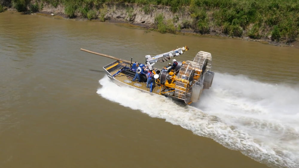 MTT Super Airboat with Drilling Rig for Utility Pole Work – MTT SOLUTIONS