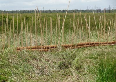 Case Study 2: – Remediation of Marsh Buggy Damage to Wetlands – Jean Lafitte Project – Layout of Coconut Husk and Pine Stake Remediation Materials – MTT Super Turbine Airboat – www.marineturbine.com